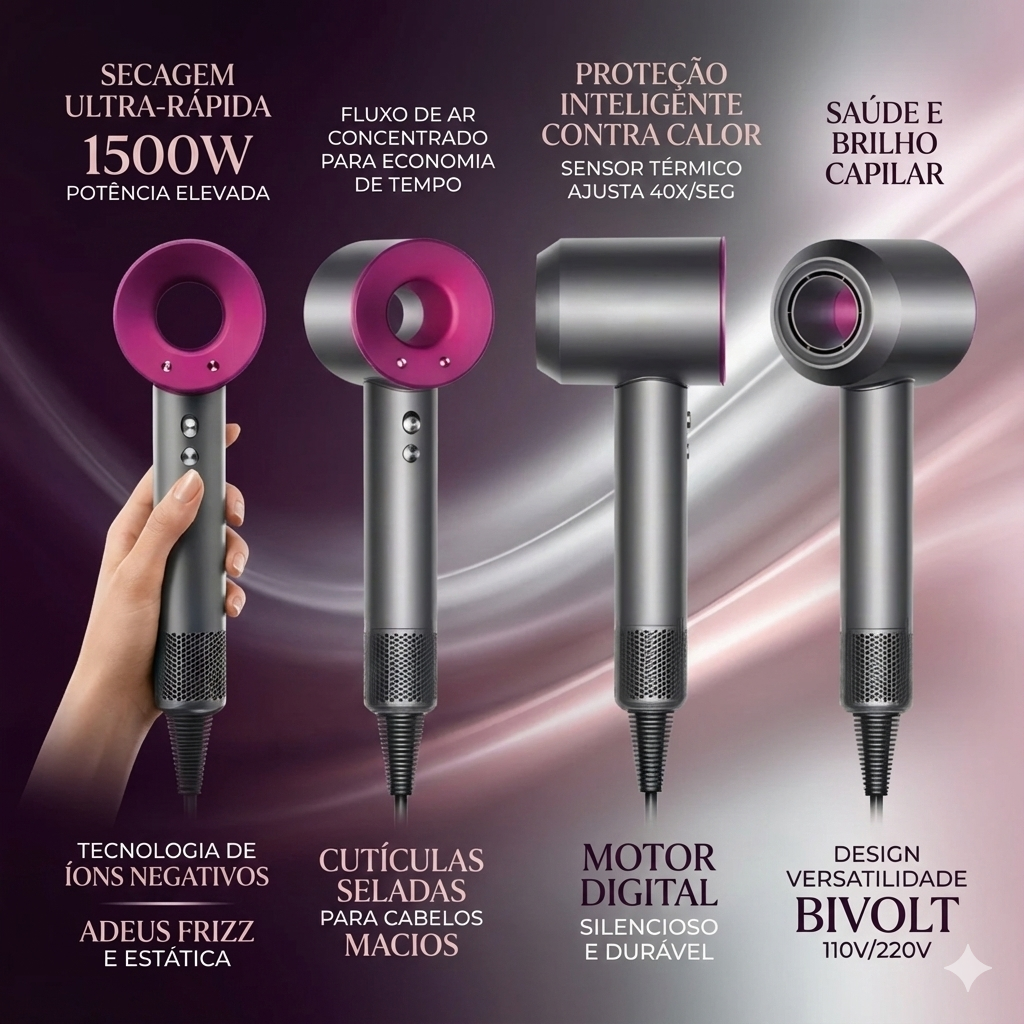 Secador de Cabelo Alta Performance 1500W 3 Velocidades Bivolt - Super Hair Dryer Supersonic